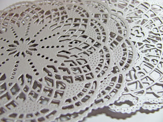 For each doily, fold in half and then in half cross wise--folding the back side to the inside.